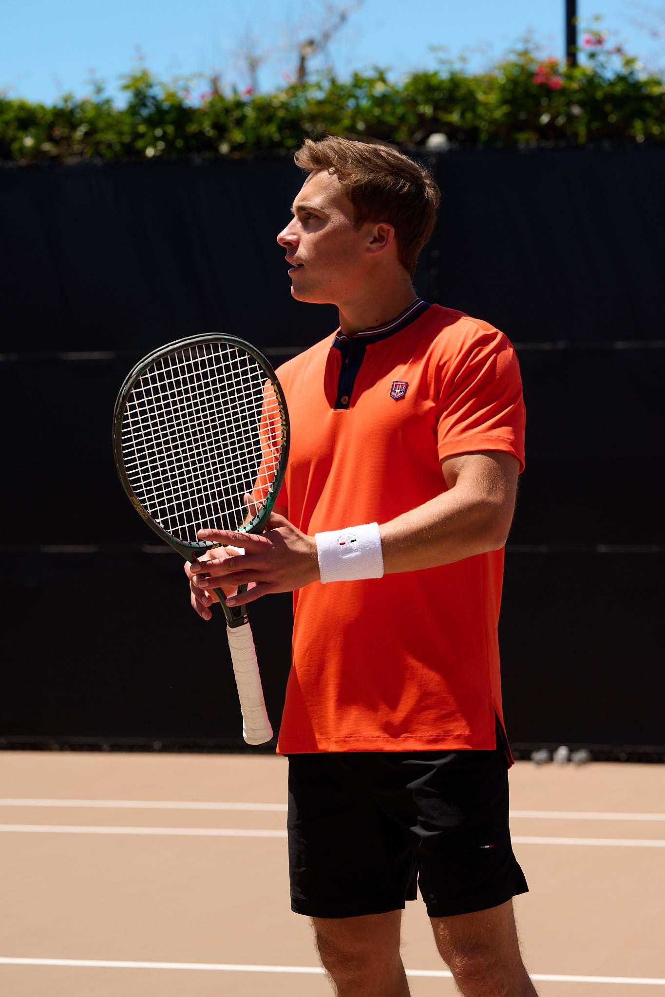 Inspired by tennis icons of the 1970s, this heritage-style polo features our signature single-piece retro placket collar with contrast piping and oak-tipped detail. Finished with Italian matte-finish buttons and an inlaid tonal felt insignia patch, each piece is assembled by hand in California using Italian-sourced luxury performance fabric.