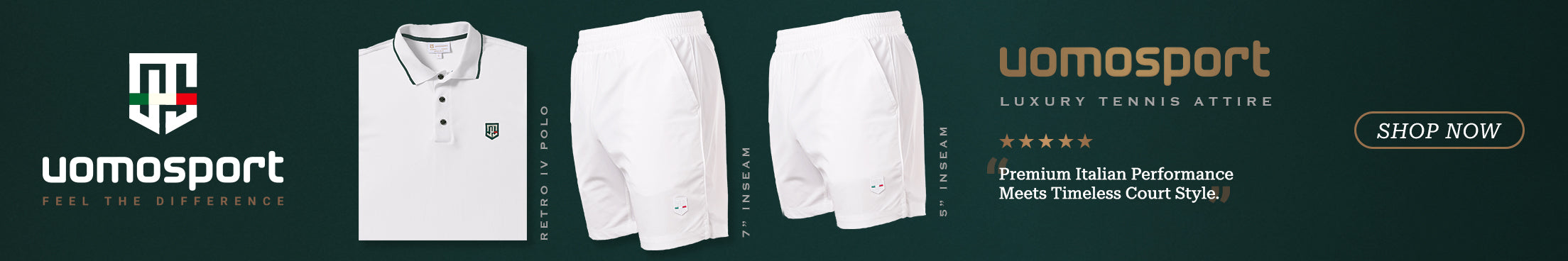 “Ever since the days of Bjorn Borg, men’s style has been severely lacking on the courts. But with its tailored, snazzy sensibility, and technologically- advanced fabrics, Uomosport is out to change the game. Ace!”.
